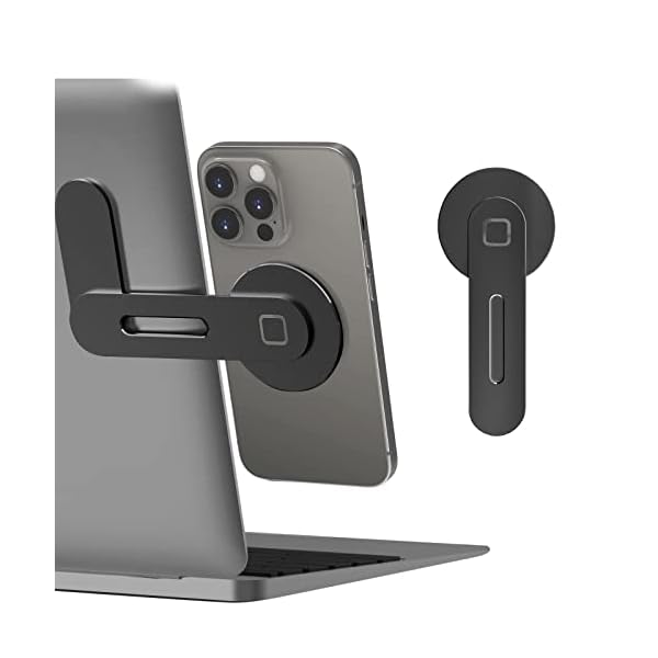【New Upgraded Laptop Phone Stand】Magnetic phone mount for laptop is iPhone 14 / 14 Plus / 14 Pro / 14 ProMax / 13/ 13 Pro/ 13 Pro Max/ 13 Mini/ 12 Pro Max/ 12 Pro/ 12/ 12 mini, no metal plates needed when wearing a magnetic case or no case. (NOTE: A metal ring sticker comes for other phones or non-mag safe case.)
