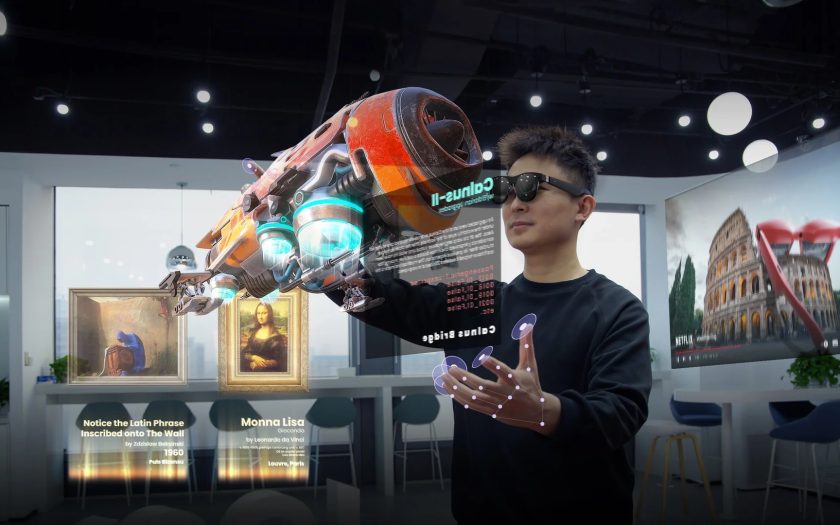 While it may not have the pancake lenses of Meta’s Puffin, the Air 2 Ultra provides fairly expansive AR viewports via a micro-OLED projection, reflected off of a secondary lens (with a 52-degree field of vision) which delivers full 3D, 1080p augmented reality displays.